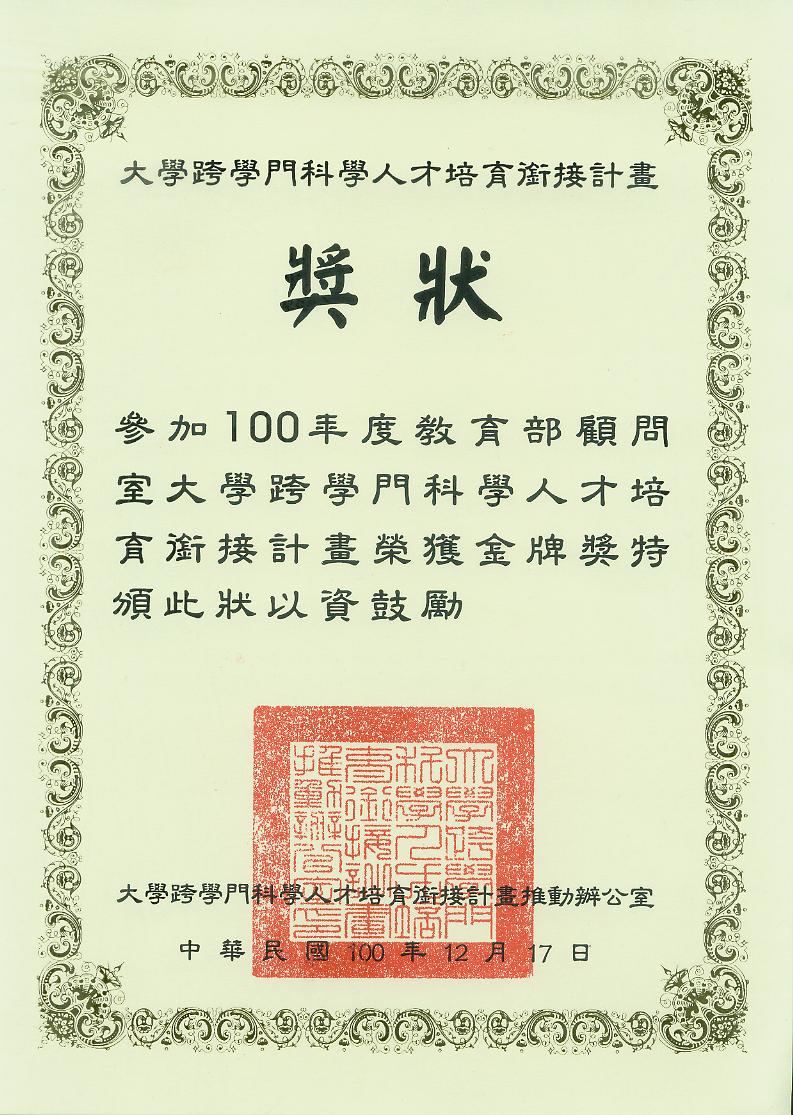恭賀本系高淑蓉教授及陳樹杰教授主持 ─ 教育部「大學跨學門科學人才培育銜接計畫」榮獲金牌獎